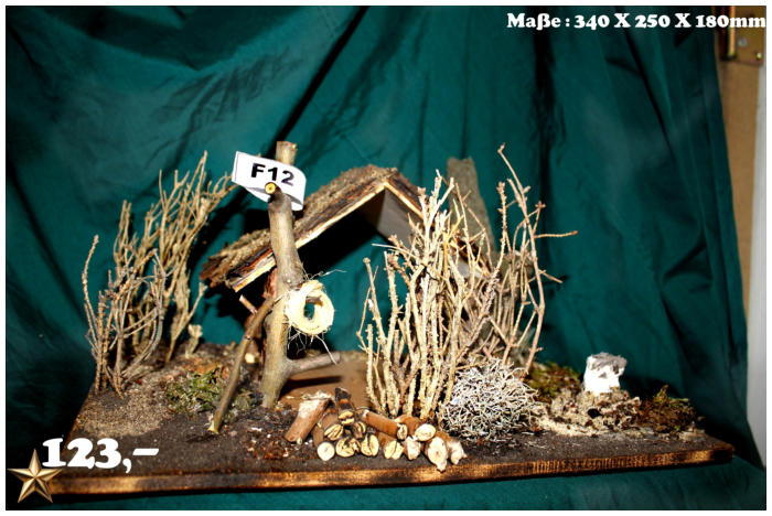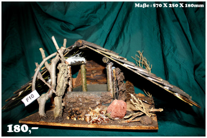 Weitere Materialien sind Holz, Stein, Kordel, und Rinde welche teils bis