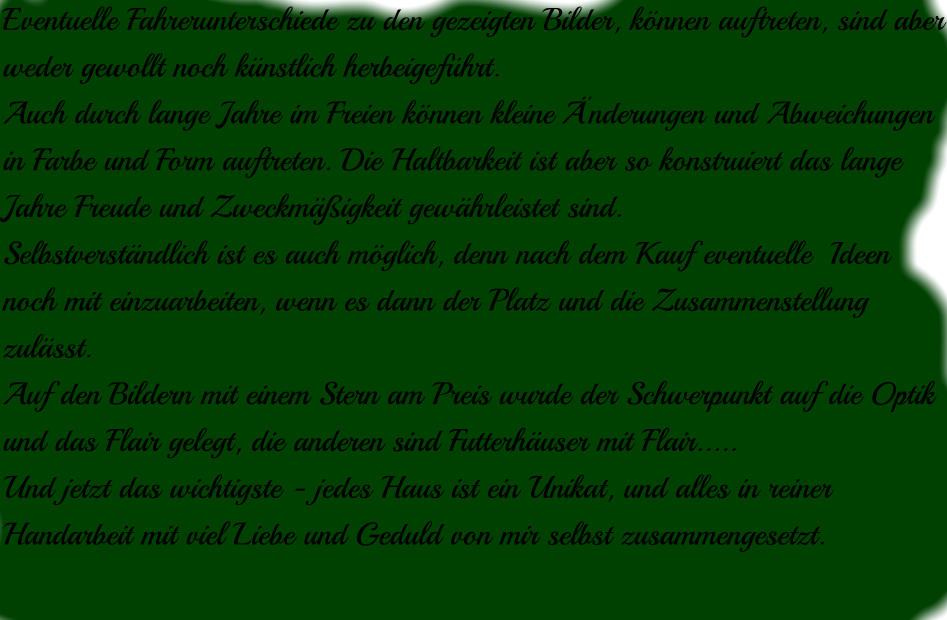 Wie schon geschrieben jedes Vogelhaus ist ein Unikat - und
